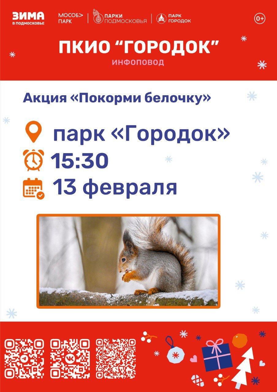 13 февраля в парке культуры и отдыха «Городок» Рузского муниципального округа пройдет акция «Покорми белочку».