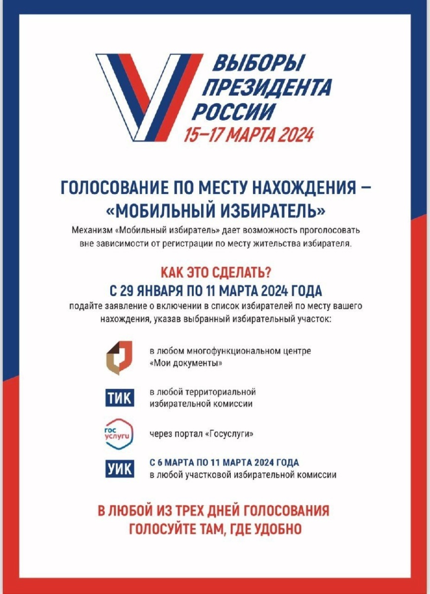 Каждый житель нашей страны может проголосовать на удобном для себя избирательном участке на выборах Президента России вне зависимости от места регистрации благодаря механизму «Мобильный избиратель».