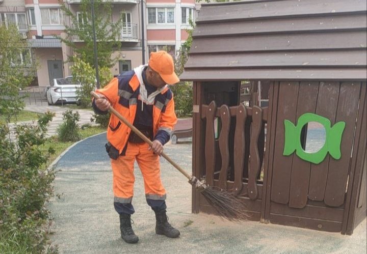Работники подметают дороги на улицах от скоплений мелкого мусора. Также они проводят уборку на парковках и приводят в порядок дворы.